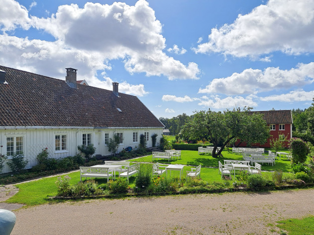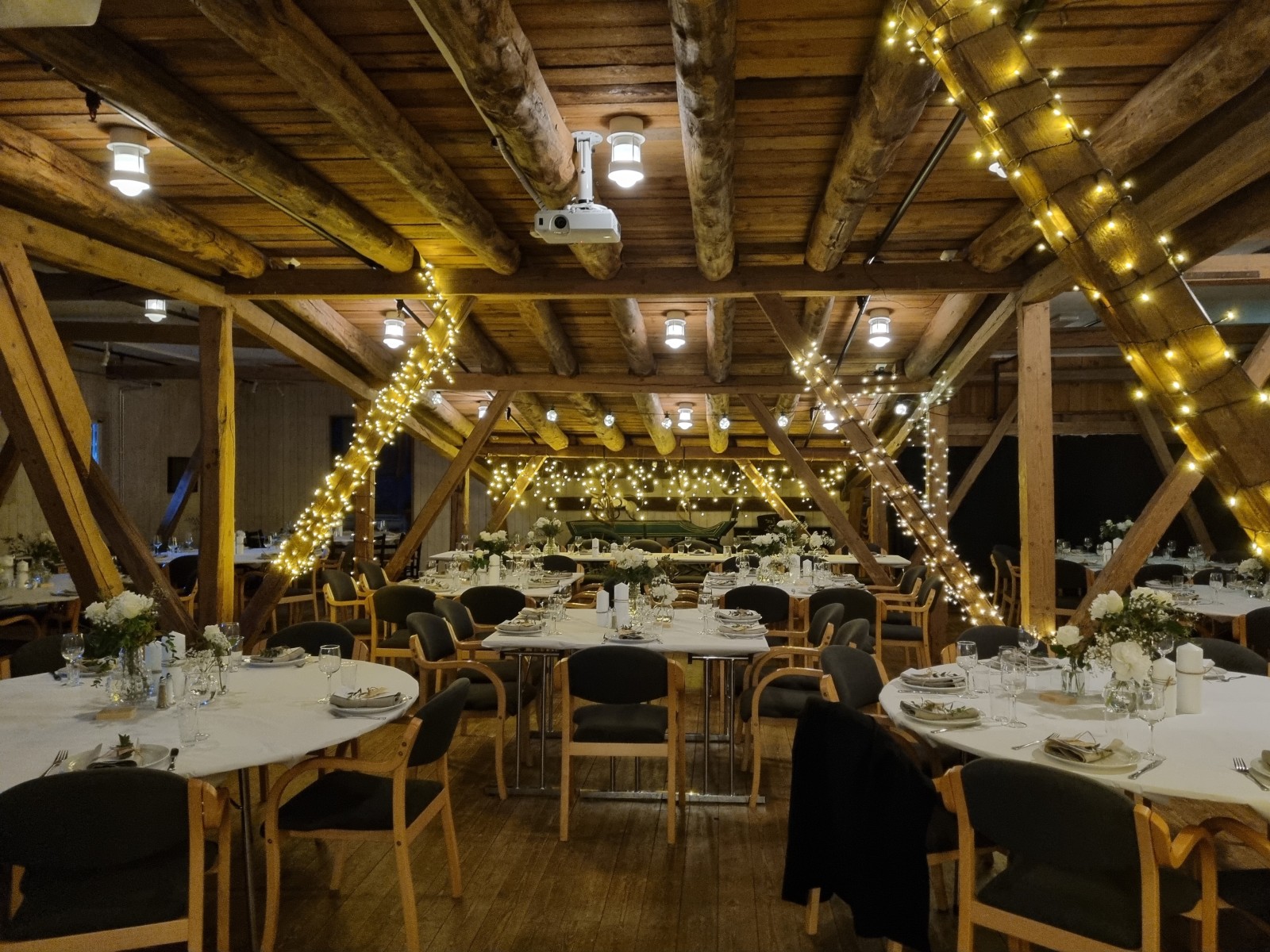 Vielsen vil finne sted i eplehagen som er i tilknytning til lokalet. Om det skulle bli dårlig vær, anbefaler vi at dere tar med paraply. Etter vielsen kan vi trekke inn om værgudene vil det slik.